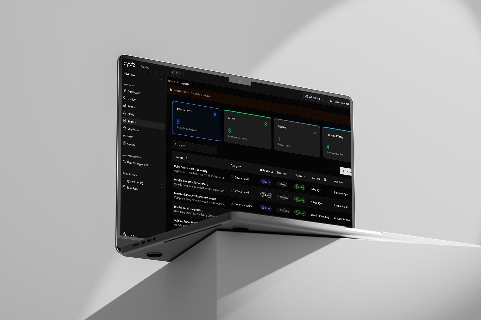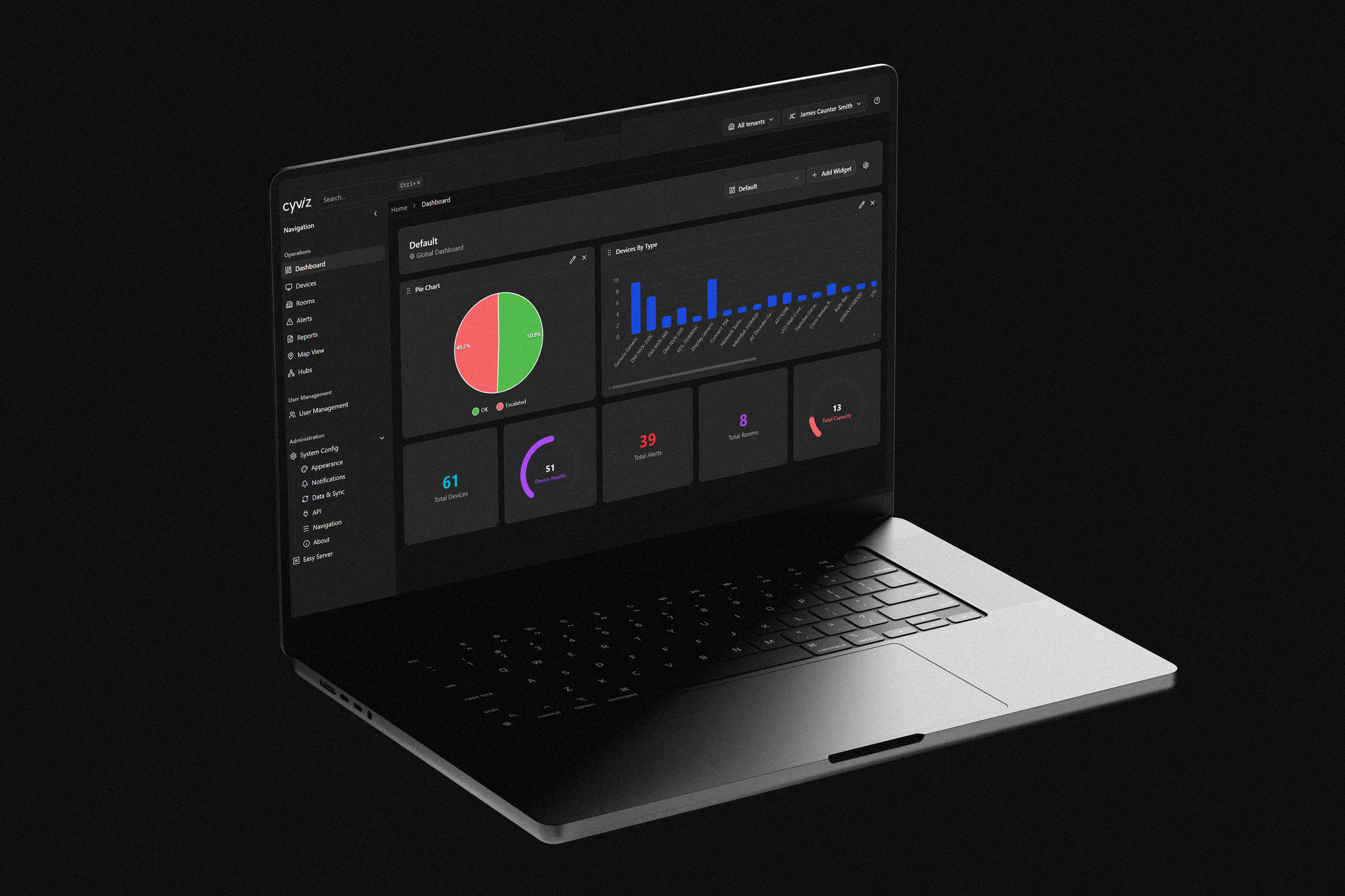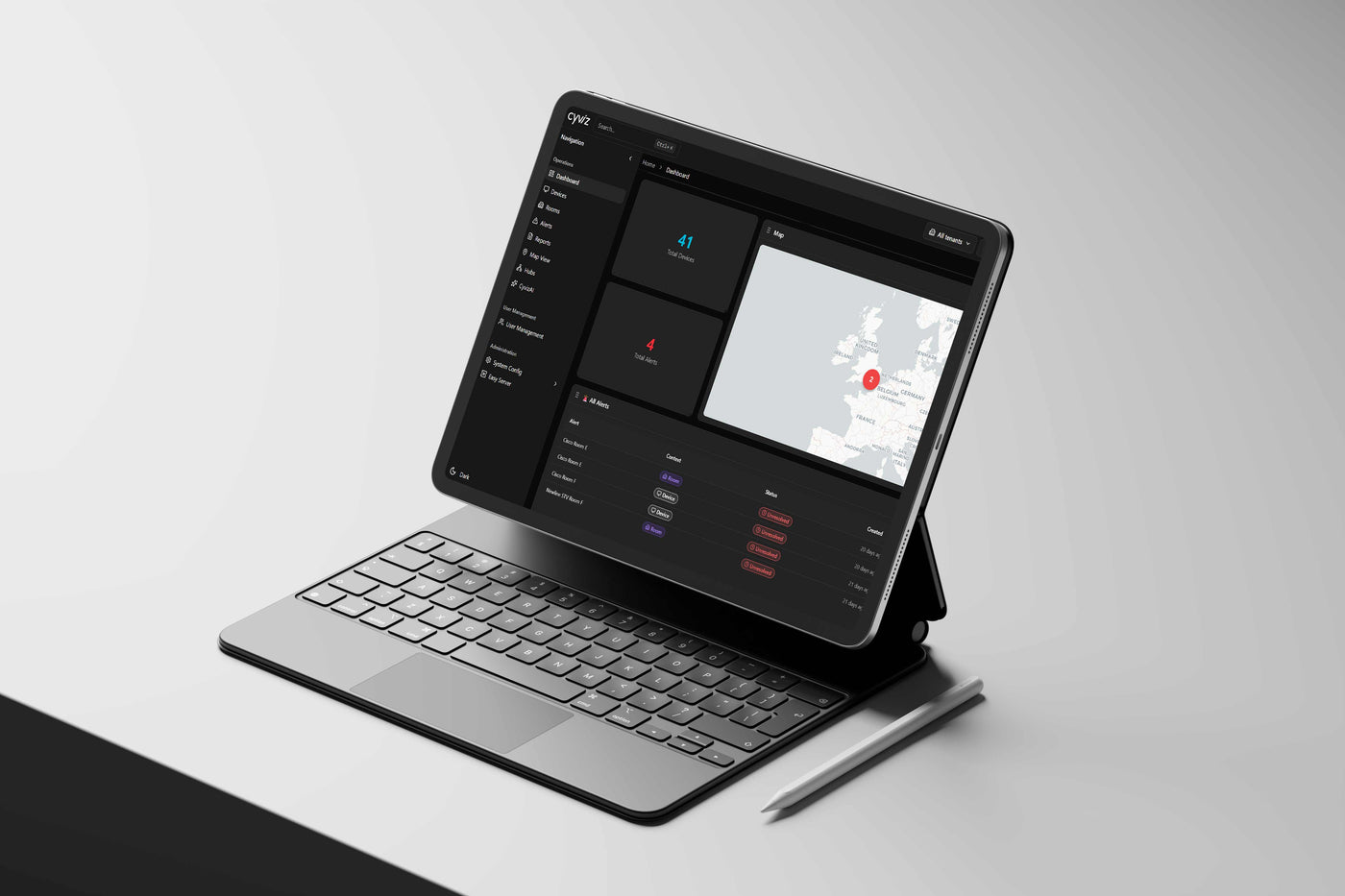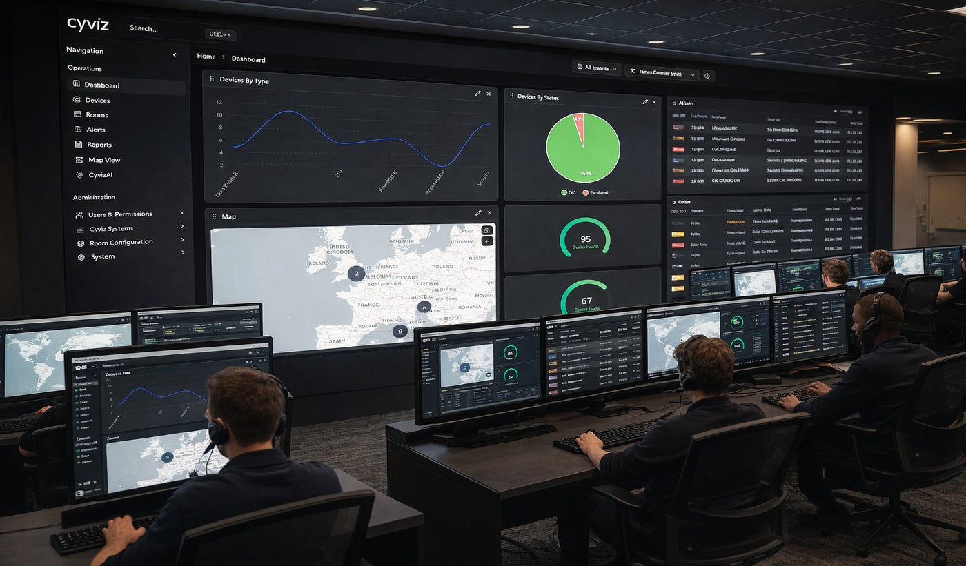 Cyviz Management & Monitoring Software es una plataforma unificada diseñada para monitorizar, gestionar y optimizar entornos tecnológicos complejos desde una única interfaz. Permite tener visibilidad y control en tiempo real sobre dispositivos AV, IT, UC e IoT, facilitando una gestión más eficiente, proactiva y escalable en organizaciones con múltiples ubicaciones y proveedores.
