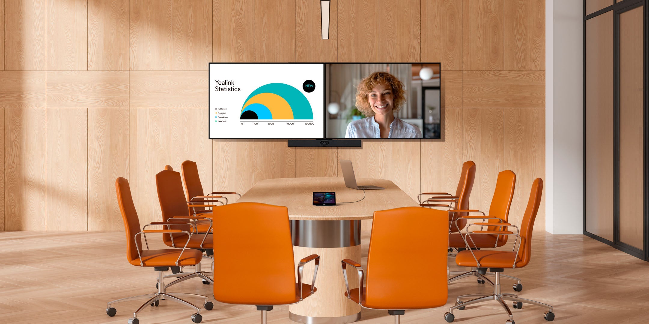 Además, un solo cable USB-C te permite conectar tu PC para compartir contenido en 4K, usar la función BYOD (Bring Your Own Device) para tus dispositivos personales y cargar equipos mediante PDcharging, haciendo que tus reuniones híbridas sean más simples y eficientes.