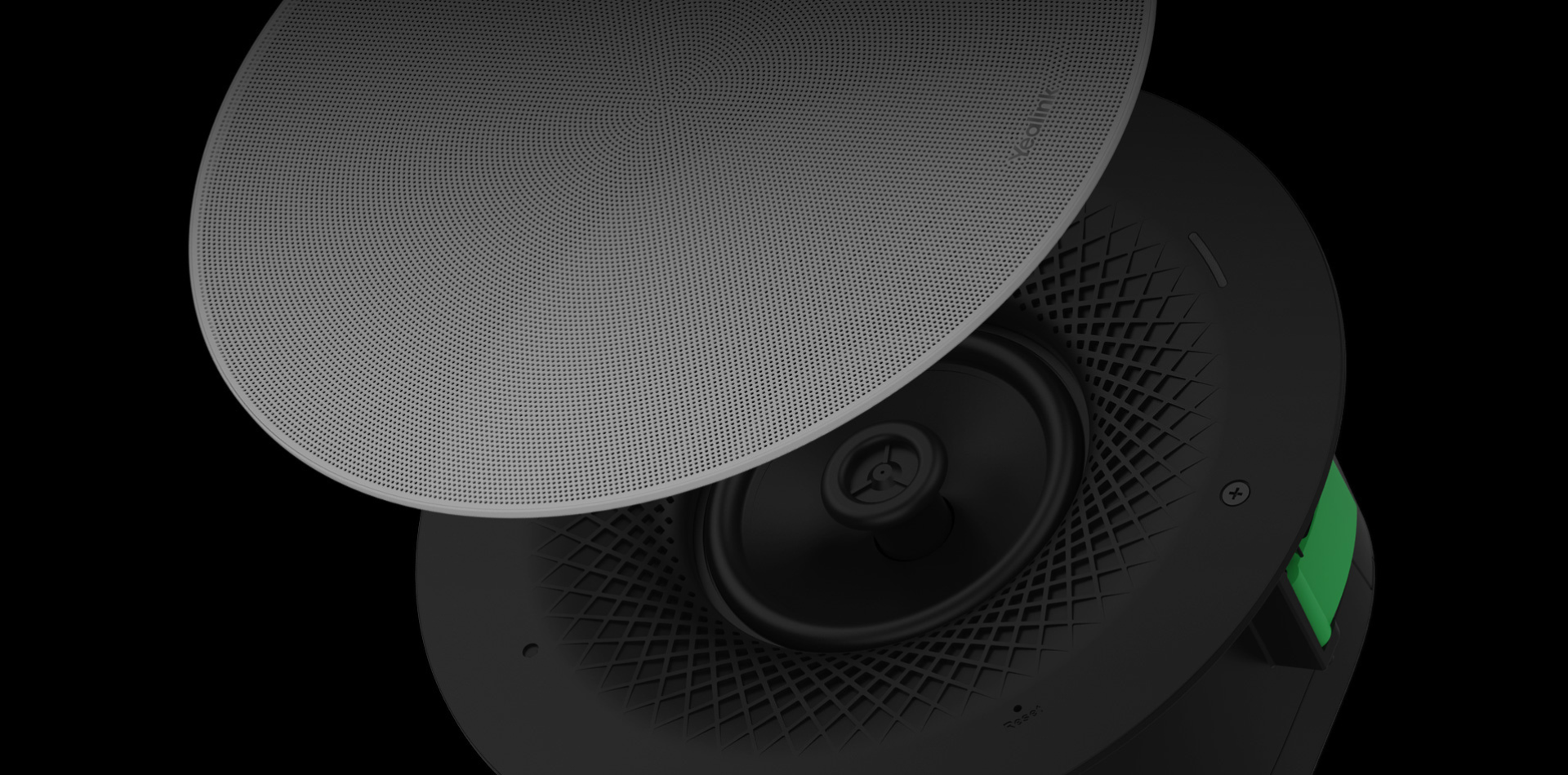 El altavoz presenta un diseño coaxial de 2 vías de perfil bajo (120mm de profundidad) y una cubierta de malla con succión magnética extraíble*. El CS10 combina audio de alta calidad con un diseño elegante y minimalista, lo que lo convierte en una opción perfecta para las salas de conferencias contemporáneas.