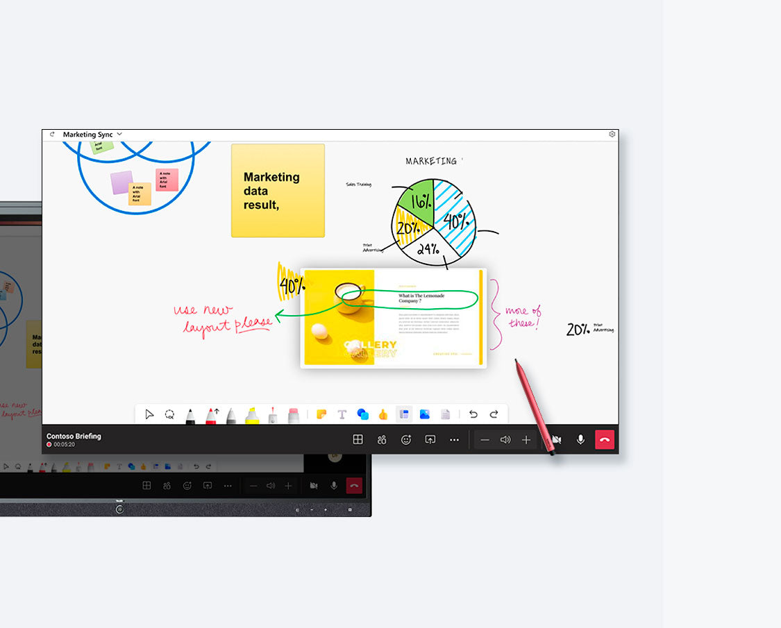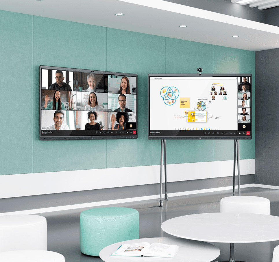 La pantalla adaptable de MeetingBoard y sus ingeniosas funciones, como entintado premium, diagramas colaborativos, componentes fluidos y otros contenido enriquecido, ayudan a impulsar la creatividad y la productividad del equipo. Con tecnología de Microsoft Whiteboarding, garantiza una perfecta colaboración en tiempo real durante la lluvia de ideas, la planificación de proyectos o la resolución de problemas mediante simples clics en la pizarra inteligente.