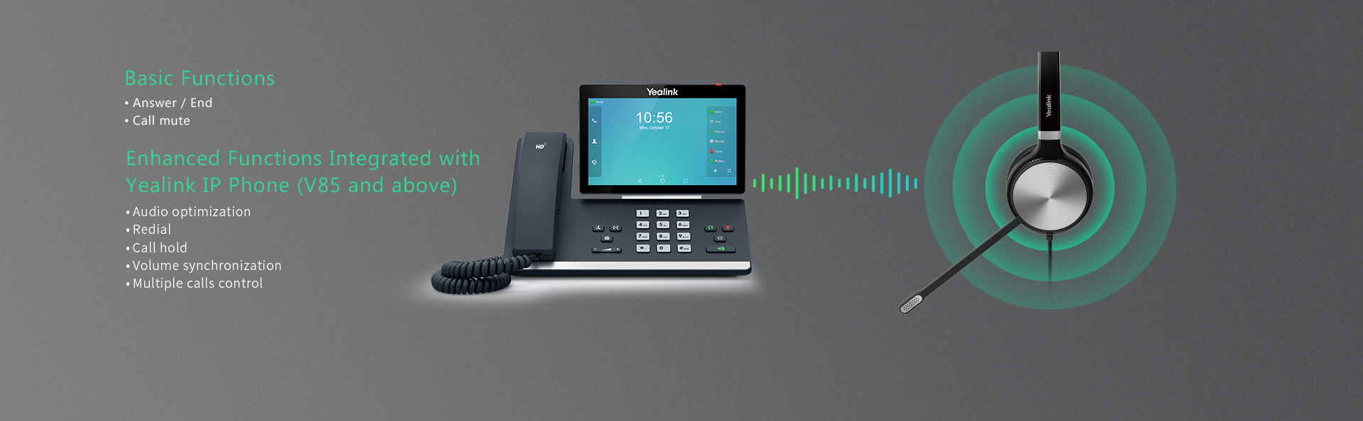 La combinación perfecta para los teléfonos IP de Yealink: te ofrecen una calidad de audio optimizada y funciones mejoradas. Su fiabilidad probada y las integraciones para Yealink USB Connect Software y Yealink Device Management Platform/Cloud Service, hacen de la gestión del dispositivo un proceso muy sencillo.
