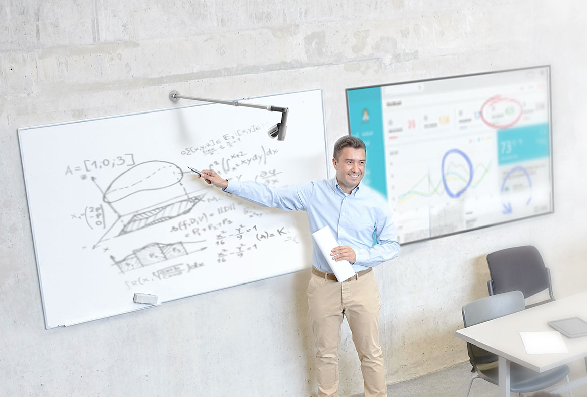 La UVC30 Teams Content Camera, fácil de instalar y con el objetivo de reutilizar la pizarra tradicional existente, permite la colaboración en tiempo real en las reuniones de Microsoft Teams. Con un soporte de pared de longitud ajustable, es lo suficientemente flexible como para que los usuarios puedan adaptarla a pizarras de diferentes tamaños. Yealink UVC30 Content Camera Kit ofrece la funcionalidad de captura de pizarra para cualquier sistema de sala de Microsoft Teams.