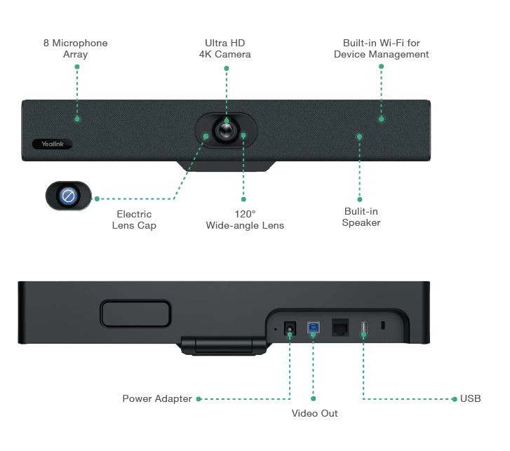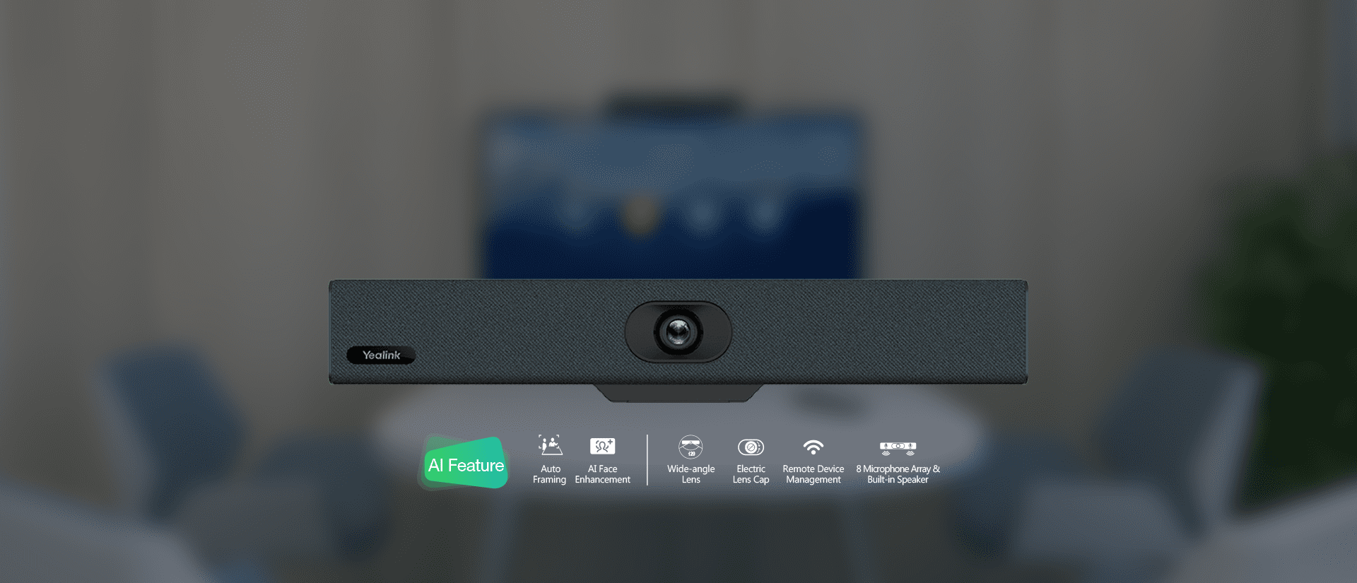 INICIAR REGISTROBarra de videoconferencia USB para salas pequeñas y de reunión, así como para teletrabajo. Yealink UVC34 viene provista de una cámara ultra HD 4K con lente super gran angular de 120º y zoom digital 5x, todo ello para una calidad de vídeo de gran nivel. Su tapa eléctrica, junto con la tecnología IA de detección facial y la tecnología de sonido de Yealink, ofrece una experiencia de videoconferencia más segura e inteligente. Además, gracias a su WiFi integrado puede conectarse a una red para que puedas gestionar remotamente el dispositivo.
